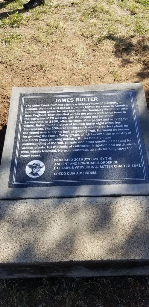 James Rutter PlaqueBy Steve Armstrong / 07/27/2020 Located at Elder Creek Cemetery 7201 Elder Creek Road Sacramento, California 95824